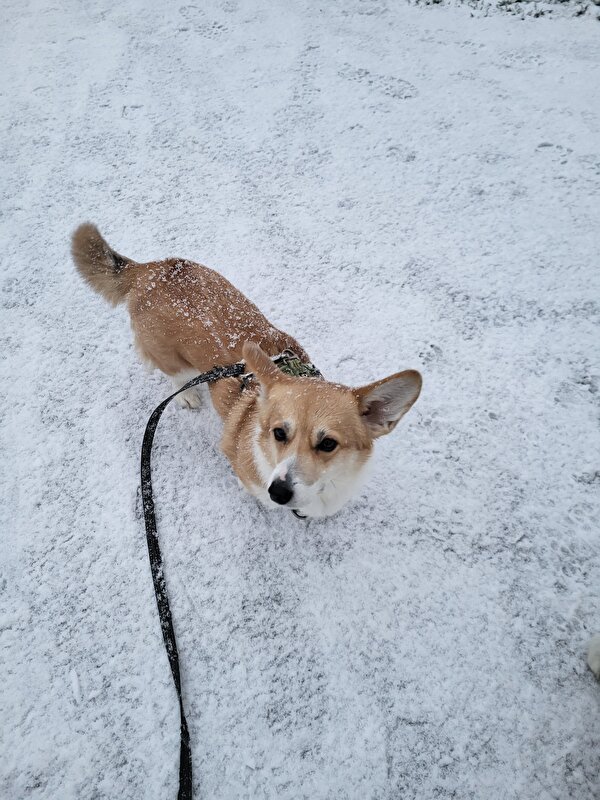 Poes wilde niet op de foto en in de sneeuw..