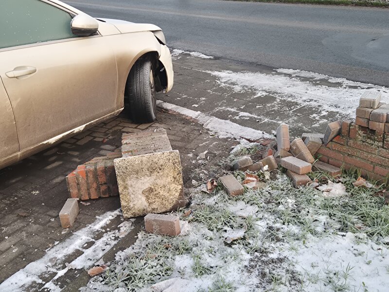 Geen verwijt naar de bestuurster trouwens, die vloog uit de bocht omdat het zo glad was.. Maar potver, ik baal!