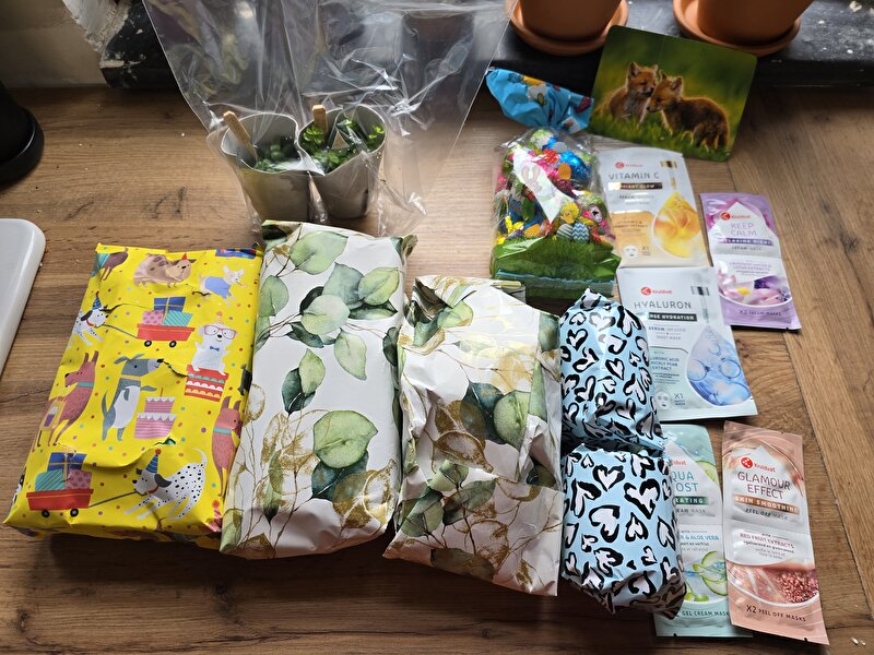 Castamickey heeeeel erg bedankt! Prachtige zaadjes voor bij de paarden, een leuke vegan traktatie voor mij. Warme sokken voor mijn ijsvoeten, genoeg om mee te douchen en de twee zomerse hamsters die kawaguchi nog niet in zijn verzameling had. Ontzettend bedankt! Namens mij en de hondjes.