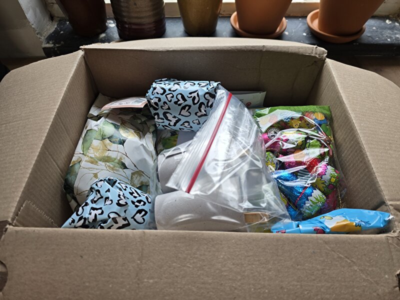 Doos vol pakketjes! Heeft wel voor een groot vraagteken gezorgd bij mijn honden oppas. Want een pakketje kreeg hij niet opgehaald en er stond wel een of andere sproeier voor de deur?