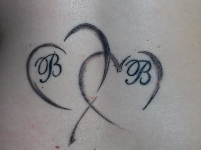 De B's staan voor de eerste letters van hun namen (Beau en Bowena) en omdat ik van ze allebei houd op een andere manier hebben ze elk hun eigen hartje gekregen, maar een mooie grote gezamelijke plek in mijn eigen hart