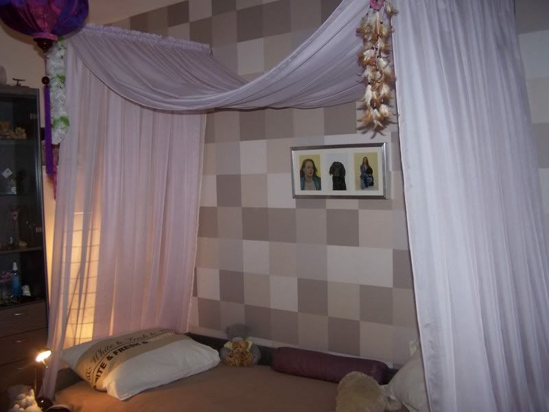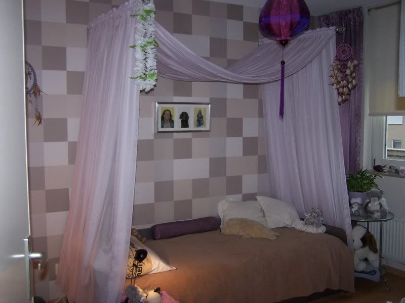 en ik heb een geel plafon.. en roze meubels en kozijnen (echt van dat knal rose) alle frutsel die op mijn kamer staan zijn, paars, lila, rose of blauw.. het zijn eigelijk helemaal niet mijn kleuren en in een opwelling gedaan (alwel weer 5 jaar geleden) maar toch vind ik het resultaat best mooi.. maar een paar maanden geleden heb ik een bed van ruim 2 bij 2 meter in mijn kamer gezet en je kunt er nu bijna je kont niet meer keren.. Maarja een slaapkamer is om te slapen toch ?