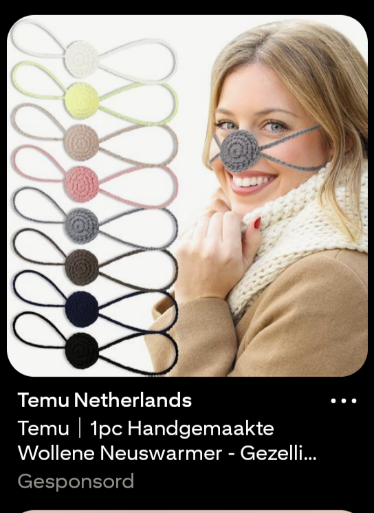Met deze photoshop ziet het er denk ik nog raarder uit dan als iemand gewoon zo'n ding op z'n hoofd zou zetten. Ik bedoel: het is een clownsneus met koordjes. En dan zo raar geplakt. Echt een goede vondst voor in dit topic Vooral die gele. Dan zie je er toch net uit alsof je een megapuist midden in je gezicht hebt. Of dat er een dikke snottebel is geploft