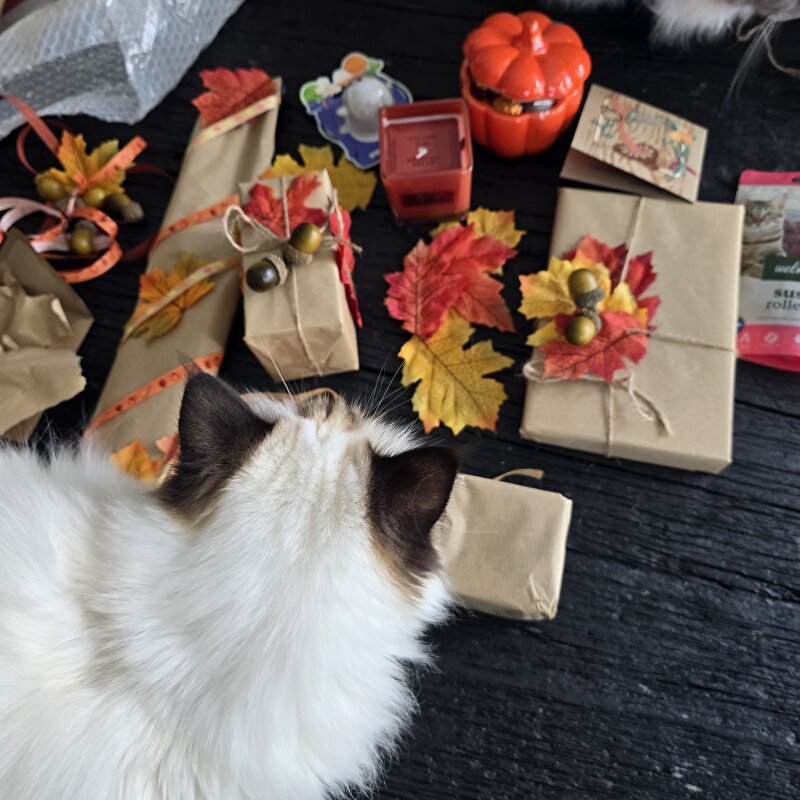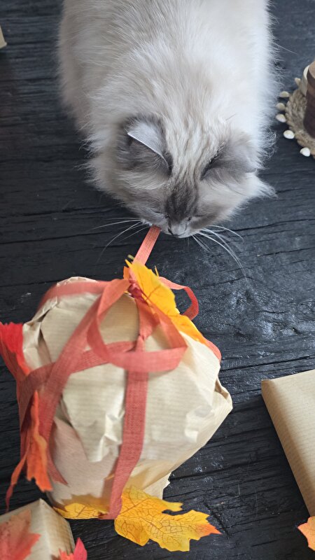 De katten vonden vooral de kleine blaadjes heel leuk toen ik alles uit de doos haalde