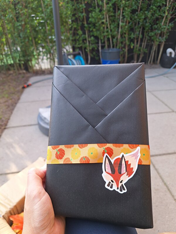 En over dat inpakken, dat is eigenlijk niet eens zo heel moeilijk. Ik heb een paar jaar terug al eens wat filmpjes opgezocht, het is vooral belangrijk dat het papier meewerkt