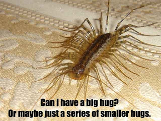 Niet lang geleden ben ik naar een andere studentenkamer verhuisd en sliep ik de eerste dagen op een luchtbed tot mijn nieuwe bed geleverd werd. Nu kwam ik 's middags thuis na het werk en dacht ik dat er een blaadje op mijn bed lag. Na een grondige inspectie (lees: kijk, schrik, gil, ren) kwam ik erachter dat het blaadje een dode duizendpoot was.. In mijn onderbewustzijn ben ik blijkbaar veel heldhaftiger, want ik had hem best wel bruut vermoord