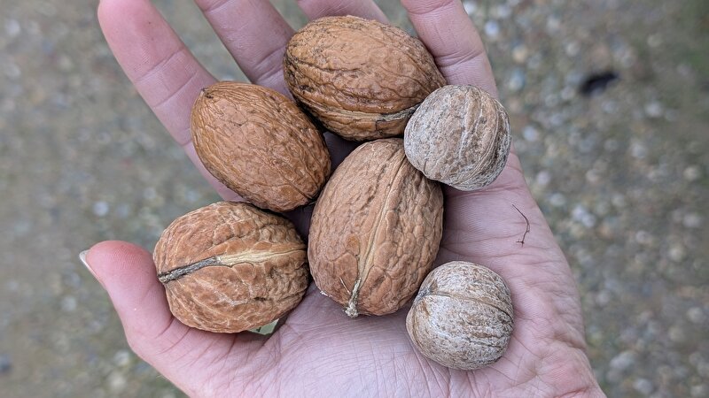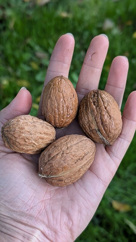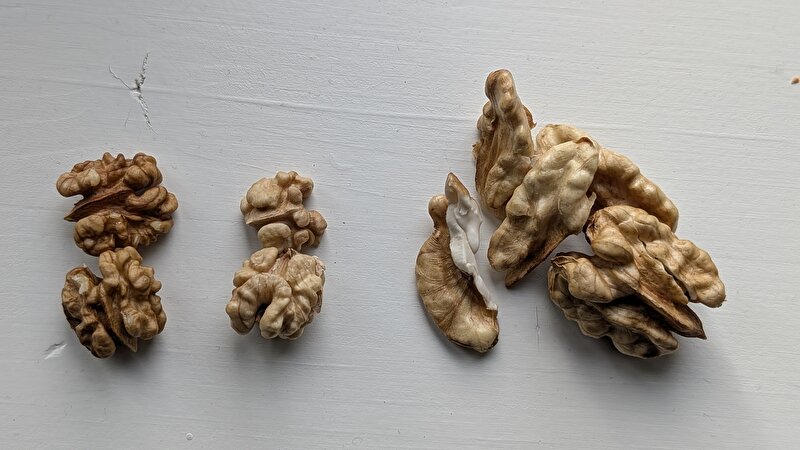 En ter vergelijking ook de walnoten die ik uit Albanië mee heb genomen