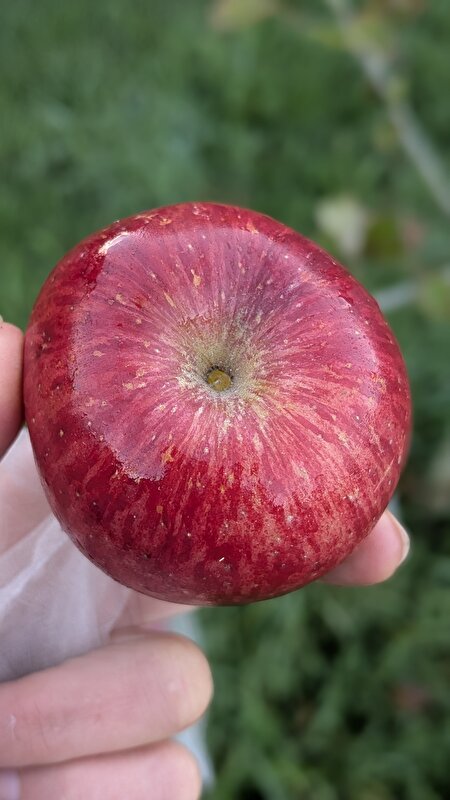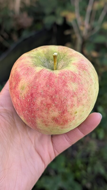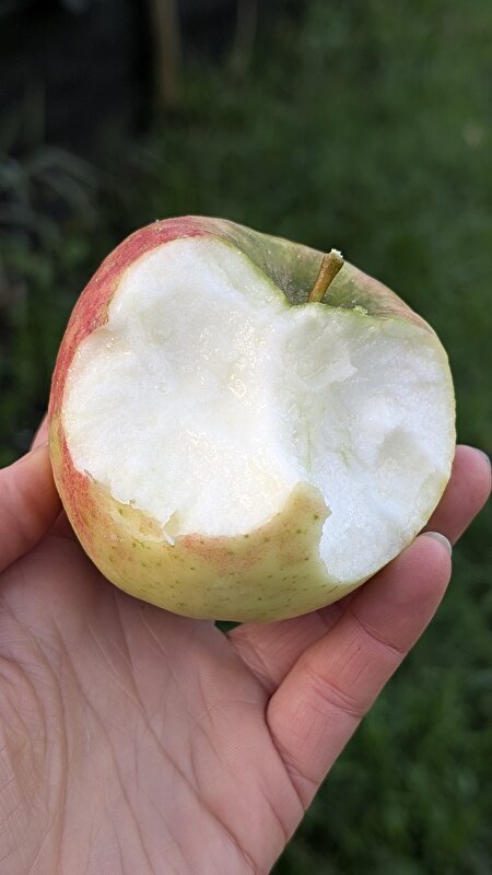 Fuji Kiku ook, beetje dezelfde smaak als de normale Fuji's uit de winkel (waar ik gek op ben). Het is een behoorlijk harde appel op een lekkere manier, en vers van de boom natuurlijk wel veel lekkerder dan die uit de supermarkt. En daarnaast is ie prachtig om te zien