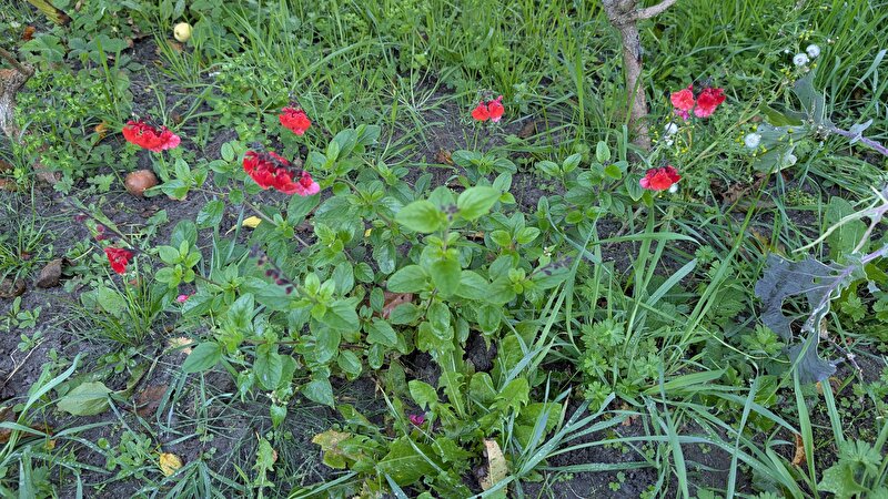 De kruiden en vaste planten en groentes die ik allemaal heb aangeplant heb ik niet allemaal gecheckt, maar de salvia's met eetbare bloemen die ik eind augustus heb aangeplant lijken het onwijs goed te doen tussen al het onkruid en gras![]()