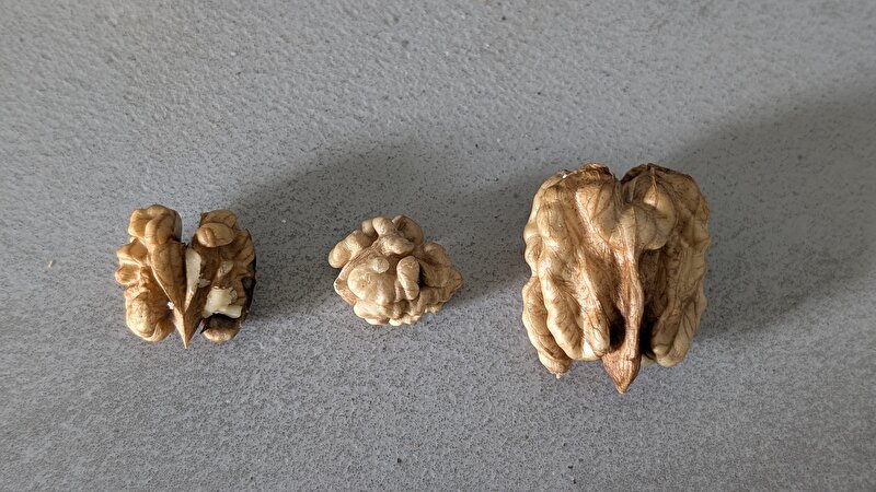 Links die uit Albanië, midden walnoten uit Rotterdam, en rechts mijn Chiara
