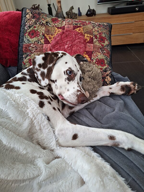 En die egel, die is haar alles. Ze heeft gigantisch veel speeltjes maar de egel wordt als eerste gepakt. De egel wordt ook als eerste gepakt als ze op de bank wil liggen (ze brengt altijd iets mee, op het einde van de avond ligt de bank vol