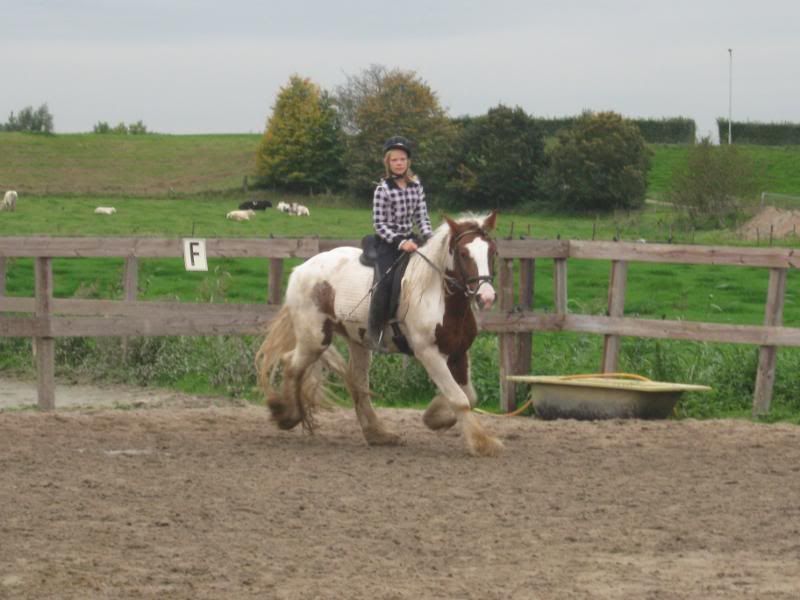 Helaas spring meneer over alle afrasteringen heen dus om ongelukken en ongelukjes te voorkomen staat hij op stal en mag per dag een uurtje,soms langer,in de bak lopen.