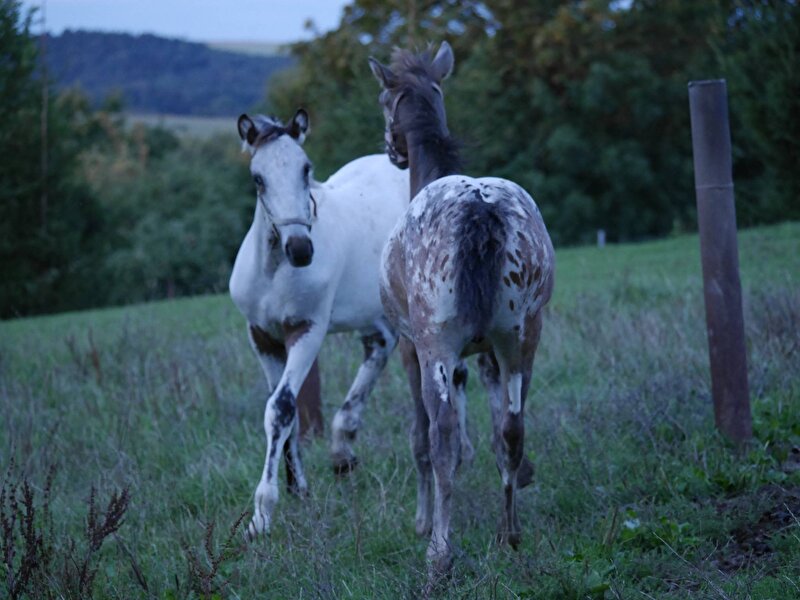 Hij heeft een superschattig halfbroertje van dezelfde Knabstrupperhengst en een raszuivere Knabstruppermerrie: Petertje!