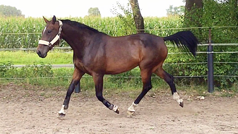 Als ik het filmpje zie dan zie ik wel de volbloed inbreng nog terug aan de neerwaartse romprichting, ik vind holsteiner bloed hier bij prima gedacht.