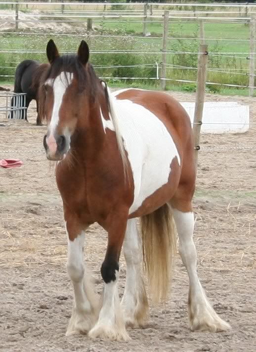 Hij klopt qua bouw. Mijn paardje heeft ook een fijn koppie en kleine oortjes vergeleken met veel andere tinkers die ik ken. Bovendien ken ik geen warmboedxtinker kruissingen met zo'n stevige Cob-bouw en zoveel sok