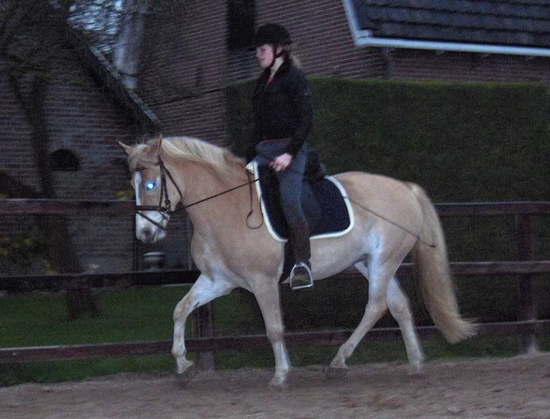 Cassia de eerste keer met iemand anders op haar rug (behalve mij en m'n moeder want wij hebben ze ingereden) :