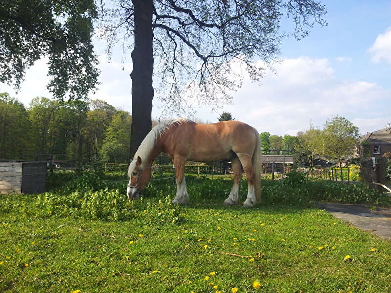 Dus van 23/7 op stal naar 24/7 in de wei en vooral veel naar het bos.