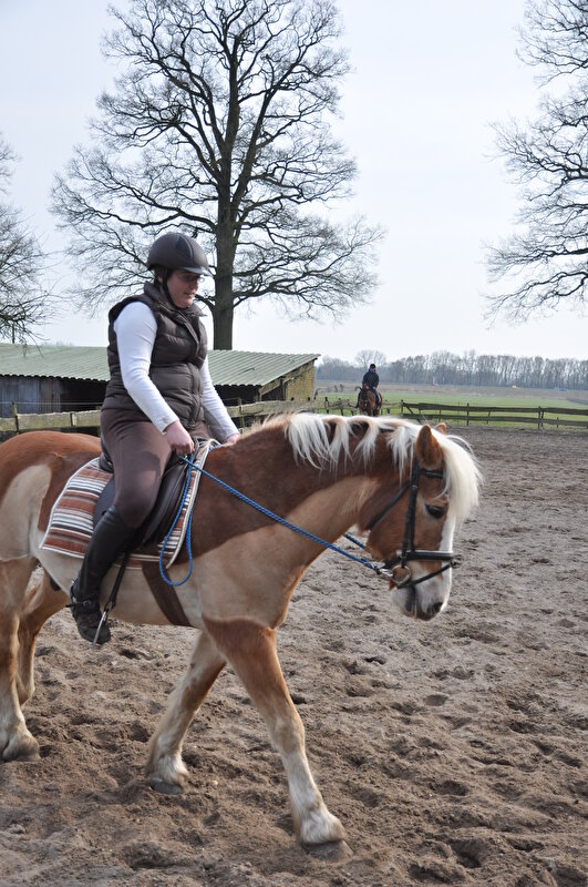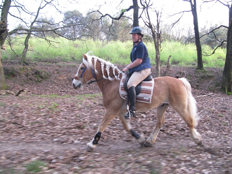 Niets blijkt minder waar, toen hij eenmaal gewend was aan het leven in de wei met volop hooi en alleen nog leuke buitenritten, werd hij fitter en fitter en ik moet hem wel minstens 3x per week aan het werk zetten, om ervoor te zorgen dat hij niet té jolig wordt.