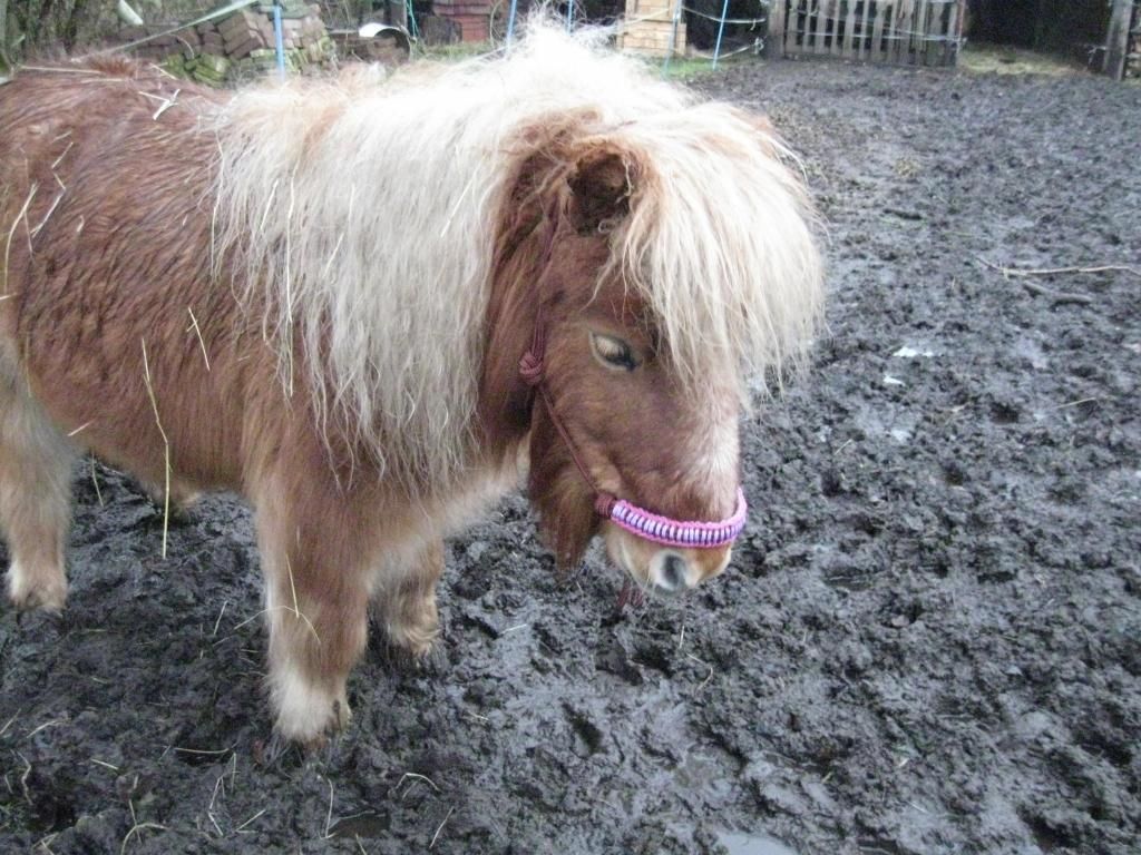 Vind je dan ook dat mijn shetje pangare heeft, want het lijkt er wel op. Alleen niet zo extreem als zijn vader. Let trouwens bij de foto niet op zijn afgezakte neusstuk van het touwhalster en zijn hooi dat overal zit.