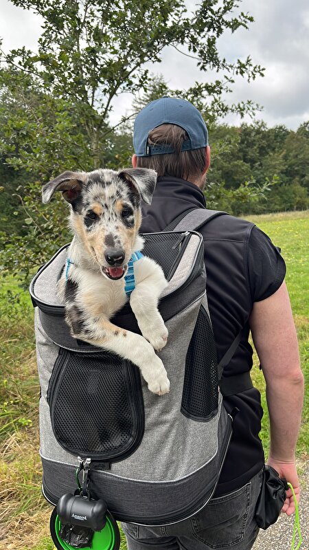 We hebben ook naar asielhonden / herplaatsers gekeken maar de ene rugzak was nog groter dan de ander