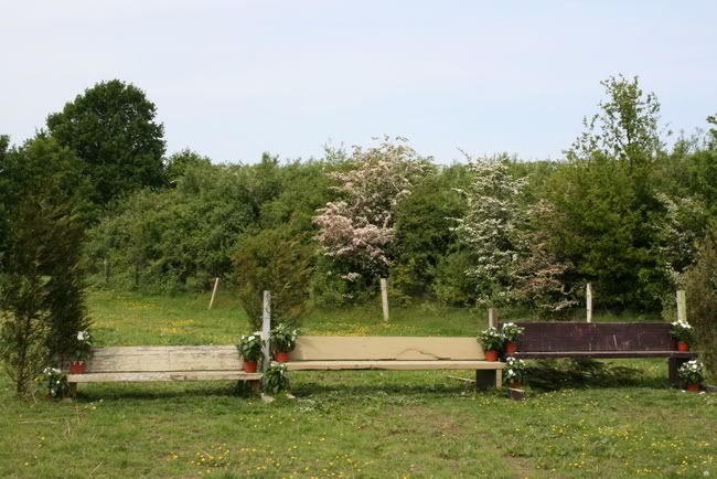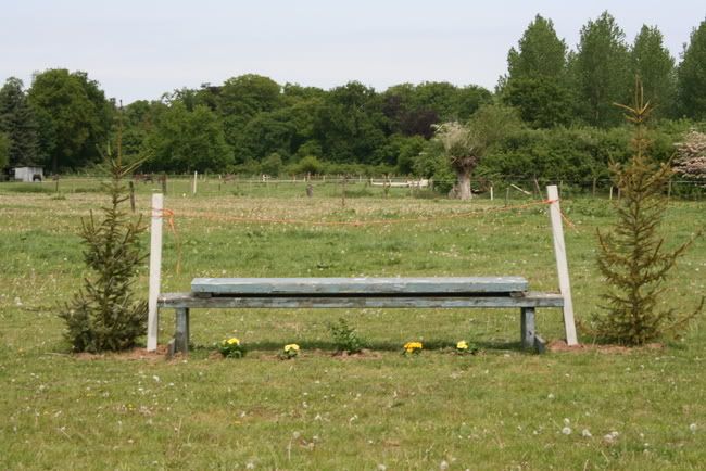 Sprong 17: bankje, hier lagen op de dag van de cross poppen/stromannetjes op