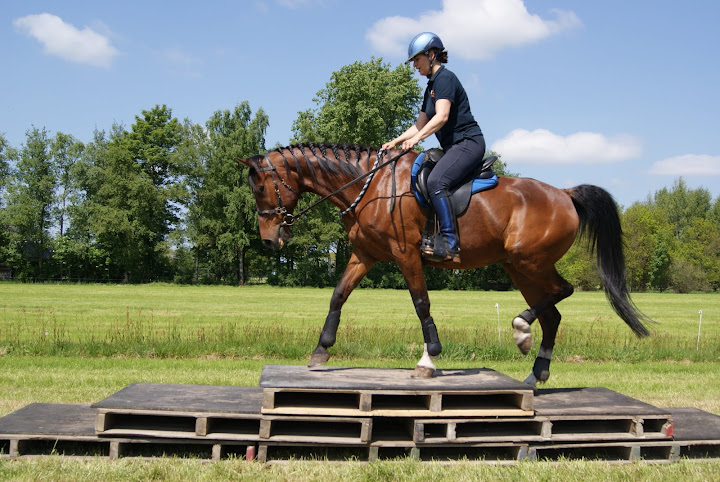 met de wip in het achterhoofd zijn toch de meeste deelnemers met hun paard over de trap gekomen