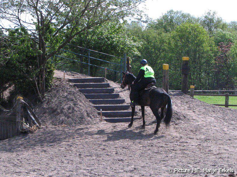 Hierna was weer een bijzondere hindernis: de trap. Komt niet vaak voor op wedstrijden, want ja, waar vind je nou een trap?