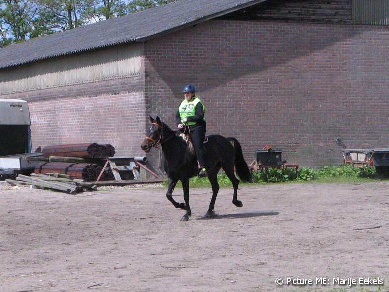 Ik merkte voor de MA al dat ze wat stijf was. Warschijnlijk van het vele stappen van de dag ervoor. Toch maar wat meer proberen te draven dus. Voor de PTV ook nog een sprongetje gedaan, maar daar kwam ze zo dom over, dat ik maar besloot om de sprongen te laten zitten.