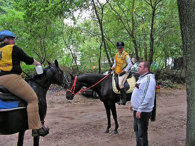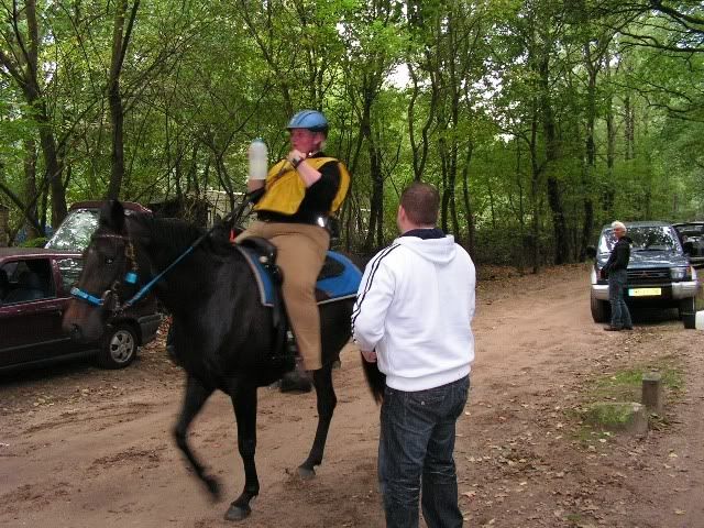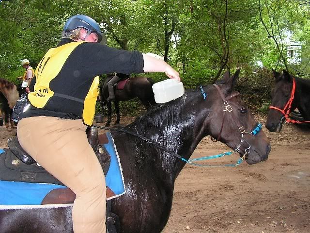 Ik ben ruim voor de finish gaan stappen, zo'n beetje vanaf het laatste groompunt. Karin is weer vooruit gereden. Het laatste stukje ben ik expres achter een mevrouw met een bruin paardje gebleven, verplicht rustig stappen voor tammy Ja Dat hielp, bij de finish was het 50.