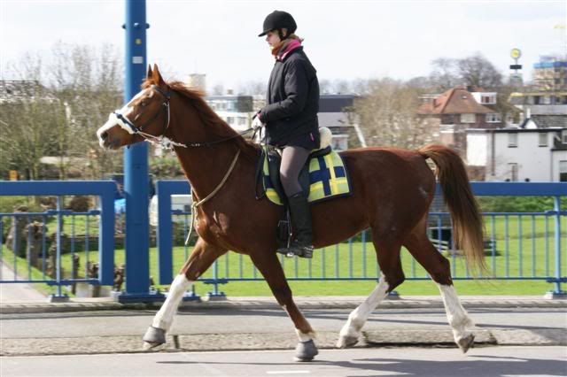 Verder hobbel ik wel eens even in de bak of het land rond zonder zadel en met een touwhalstertje en 1 halstertouw.