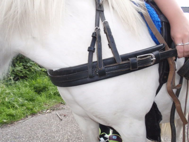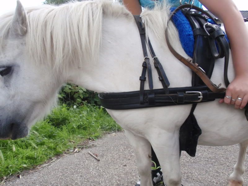 Wat betreft die lepel; die zit wel erg raar, ik rijdt ook met lepel maar die is mooi in verhouding met het hoofdstel en hoofd, daar heeft Ot verder geen last van. Vind deze lepel wel erg raar en lang zitten, kan me niet voorstellen dat het fijn is voor de pony, en eerlijk gezegd vind ik het op deze manier juist minder mooi. Ook ik zou de lepel er af halen ;)
