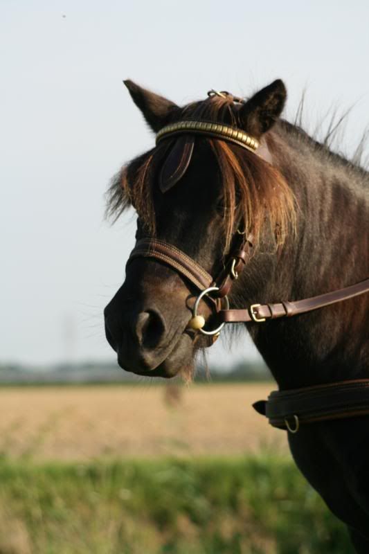 @Evelli: Inderdaad, het is een bruin leren excelsior tuig, en heb het voor een superzacht prijsje van een bokker over kunnen kopen. Ben er echt onwijs blij mee. Het staat hem zo ontzettend mooi!