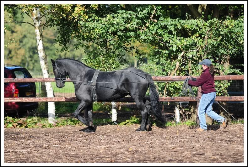 Vandaag ging het uiteindelijk wel goed, maar John heeft er wel even moeite mee gehad. Mevrouw was heet en boos, stuiterend ging ze de bak door... Heb haar toen het goed ging weer overgenomen en bij mij liep ze ook lekker! Kreeg een complimentje dat ik haar goed voor elkaar had