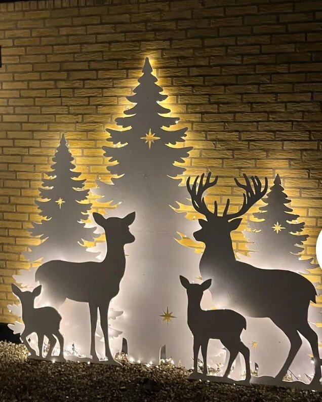 Ik ga zulke kerstdeco maken op mn huis. Dit is even voorbeeldje. Heb al n sneeuwpop en lantaarn en 1 kleinboompje uitgezaagd en geschuurd. Er komt nog een koppel herten en klein duimpje (love de efteling) en een heel bos aan bomen.