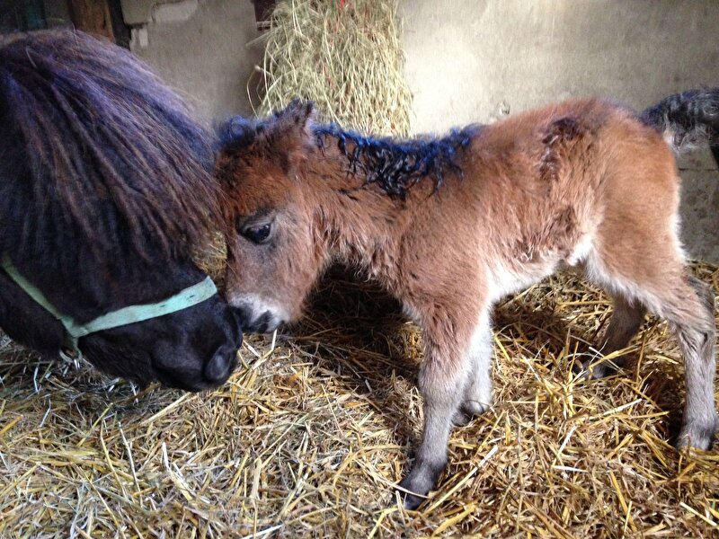 ze groeit erg hard en is vandaag al weer 4 weken oud! Ik denk dat ze gewoon donkerbruin gaat worden, maar ze heeft wel lichte plukjes in de staart.. Normaal gesproken zie ik dit niet bij bruine veulens.. Heeft iemand dit vaker gezien? Of zal ze dan toch iets lichter van kleur blijven ?