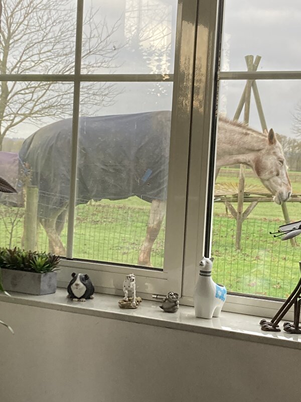 Pony is vanaf de zomer naar onbeperkt weide over gegaan (ivm de koliek en iemand gaf als tip zachter hooi voeren) en de grote na de weidegang. Vorig jaar was zij teveel afgevallen in de winter, ondanks de combinatie graszaad en weide (wss mede door het gebit). Voor dit jaar heb ik nog wel wat graszaadhooi liggen voor t geval dat, maar ik vind dat ze te weinig eten dus dat voer ik momenteel niet.