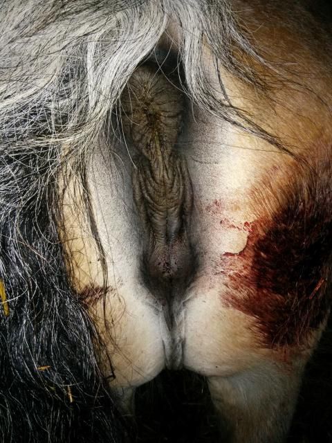 Ik herken het van een merrie van een vriendin. Die gaf het ook. De da zei idd ook dat het geknapte vaatjes waren. Toeval wil dat deze merrie een voldragen dood veulen heeft gebaard. Of dit er mee van doen heeft is nooit duidelijk geworden maar een gewaarschuwd mens telt voor 2