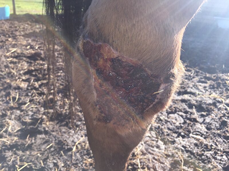 Dierenarts laten we ook nog komen maar hij is meer voor reguliere , dus behandelen met wondzalf en inpakken .