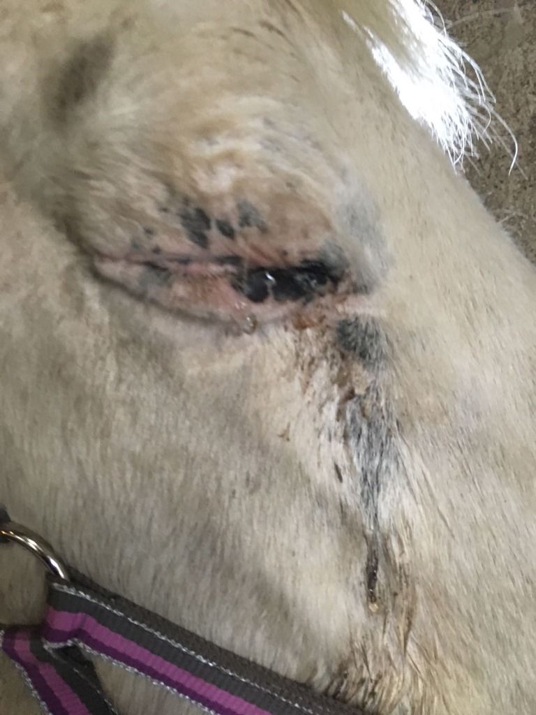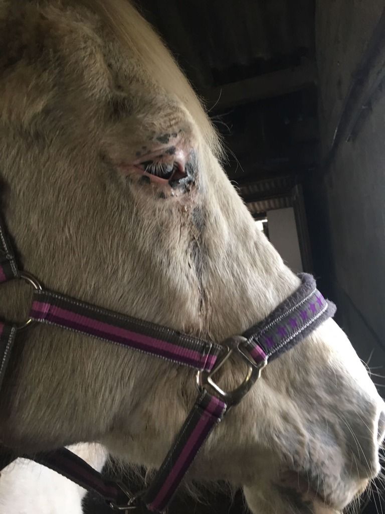 Hier zou een veearts naar moeten kijken. Het is geen tijd voor vliegen dus het kan een bechadiging van het hoornvlies zijn of steeds terugkerende uveitis (maanblindheid). Zo'n ontsteking is echt heel pijnlijk voor een paard en zalven helpt niet. Echt alle reden om hier een veearts bij te laten komen. Dan kan hij ook gelijk naar de koker kijken.