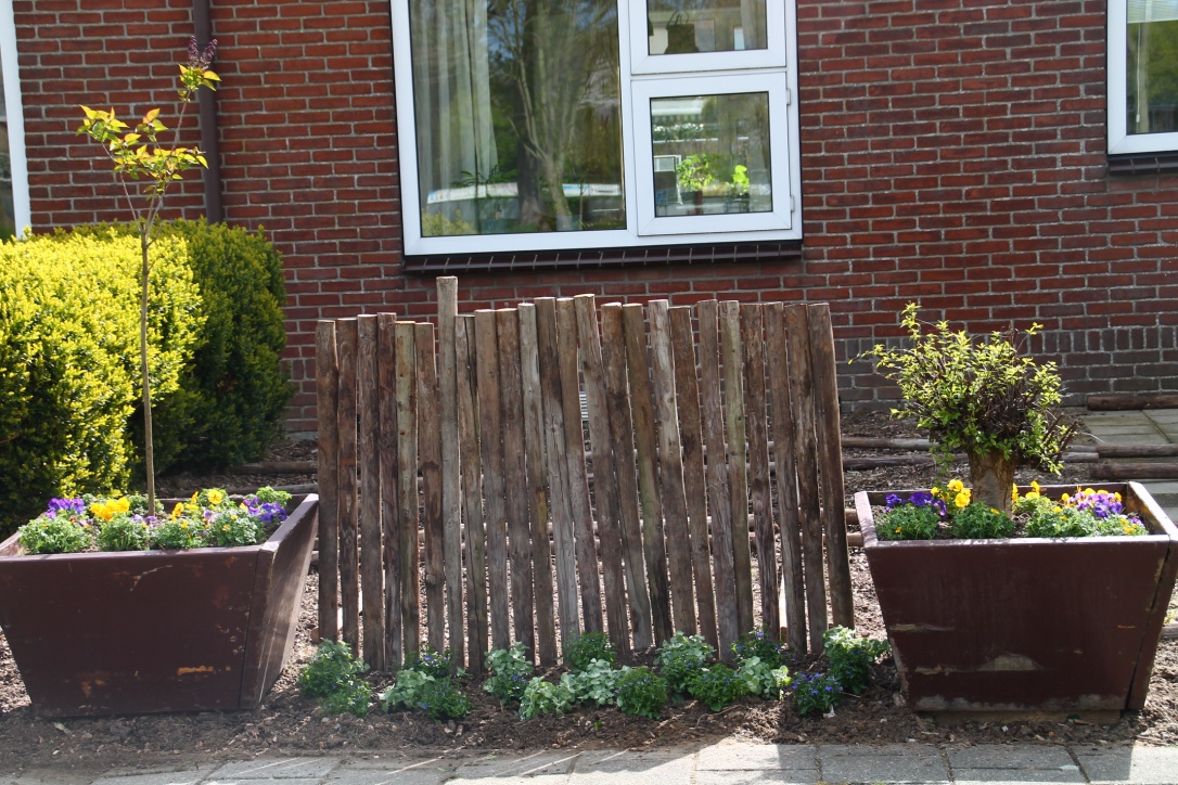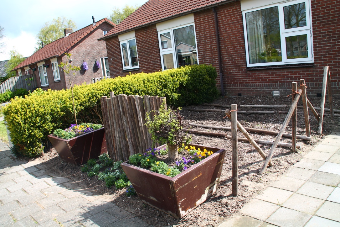 Heb hier tussen elk soort gewoon een beetje grond aangestampt als paadje. Echt verharde paadjes wil ik eigenlijk niet want die moet ik er dan elk jaar weer uit halen als ik er met de frees doorheen wil.