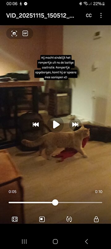Ik heb zijn rompertje opgeruimd (moeten we bewaren voor als de wonden nog verder opzwellen). Komt baco ineens met het rompertje in zijn bek door de kamer gewandeld![]()