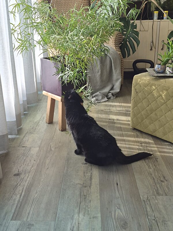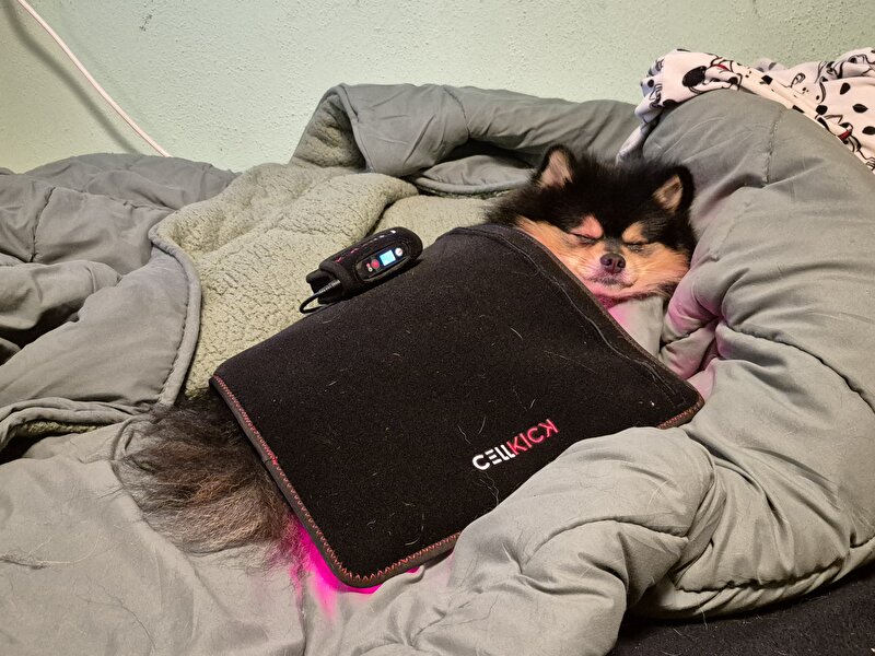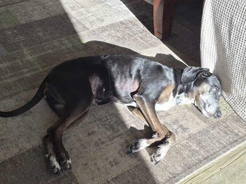 En Puck profiteert van de eerste streepjes zon in huis!