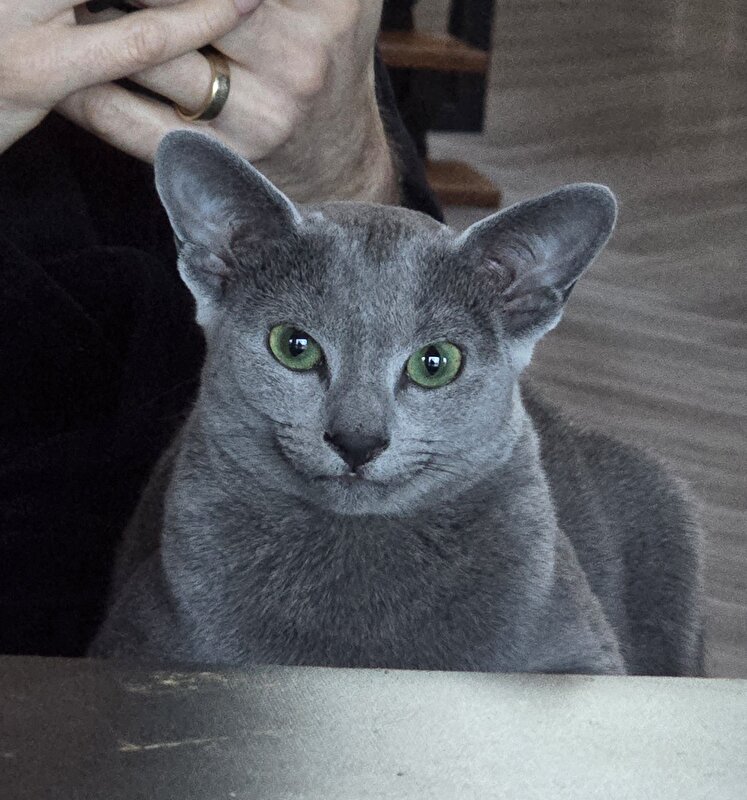 c_alsemgeest schreef:De katten mogen tijdens het eten niet op schoot, mijn man liet Mishka toch op schoot...