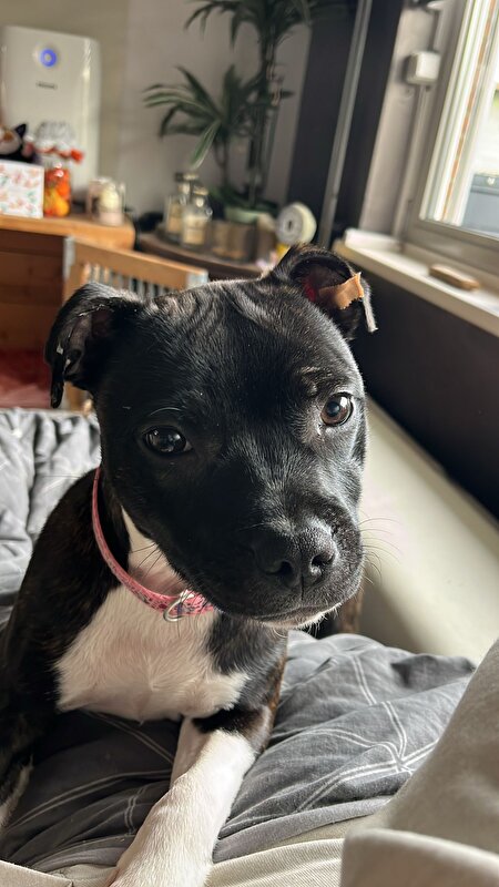 Miepmiept schreef:Hier ook eigenwijze oren, maar ik zie het niet zo zitten om ze de lucht in te plakken. Ze is vijf maanden geweest en zo'n 22 kilo. Lief & pienter ding is het nog steeds.