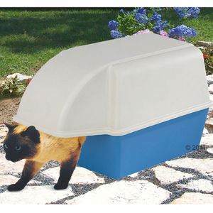 TS: Kun je de zieke en immobiele kat+kattenbak misschien in een afgesloten ruimte (desnoods een bench) zetten? Dan voor de gezonde kat (als die er een nodig heeft) een andere kattenbak in de "algemene" ruimte zetten, maar dan op hoogte zodat je hond er niet bij kan?