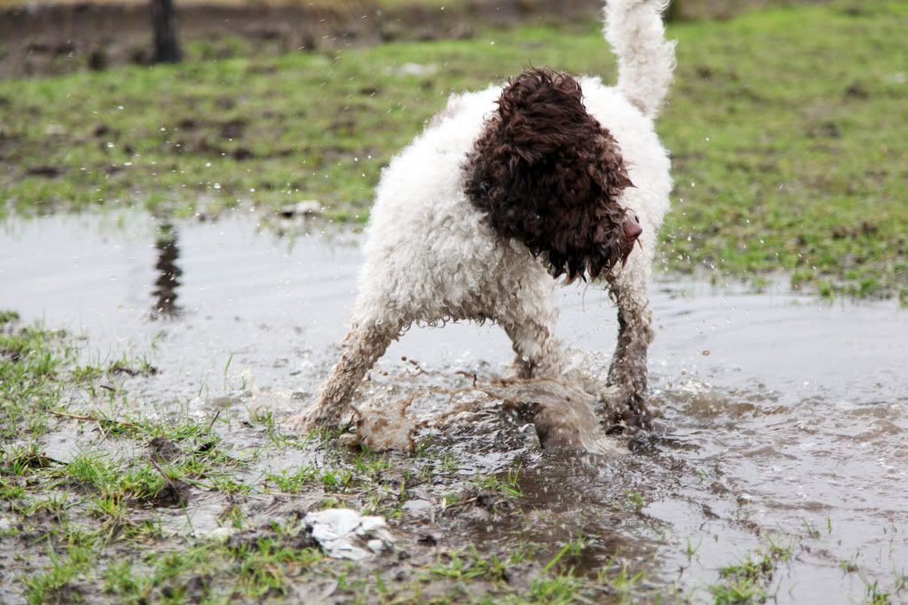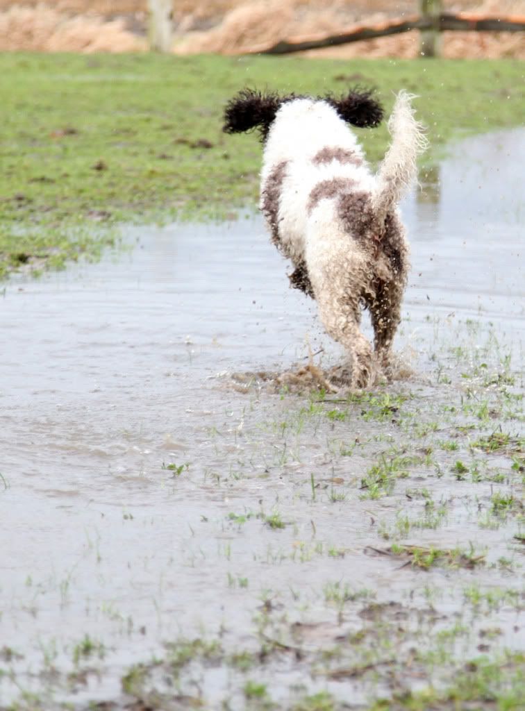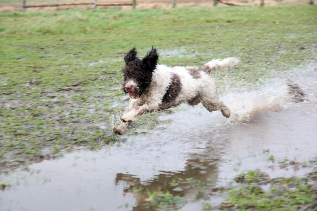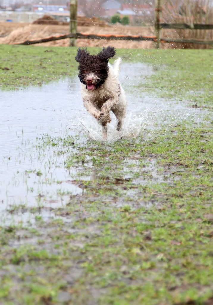WHOEESHH daar komt ze aangestormd om naar een nog grotere plas te gaan