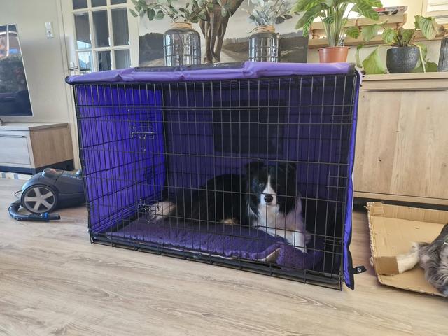 Jaxx lag altijd in een prima bench maar wilde hem meer ruimte geven en kocht een nieuwe bench met hoes