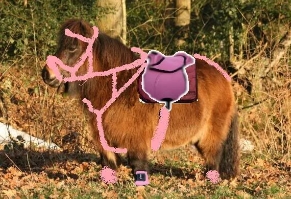 * Roze martingaal of iig een voortuig in die richting, niet aan de teugels vast, dus geen martingaal maar een voortuig