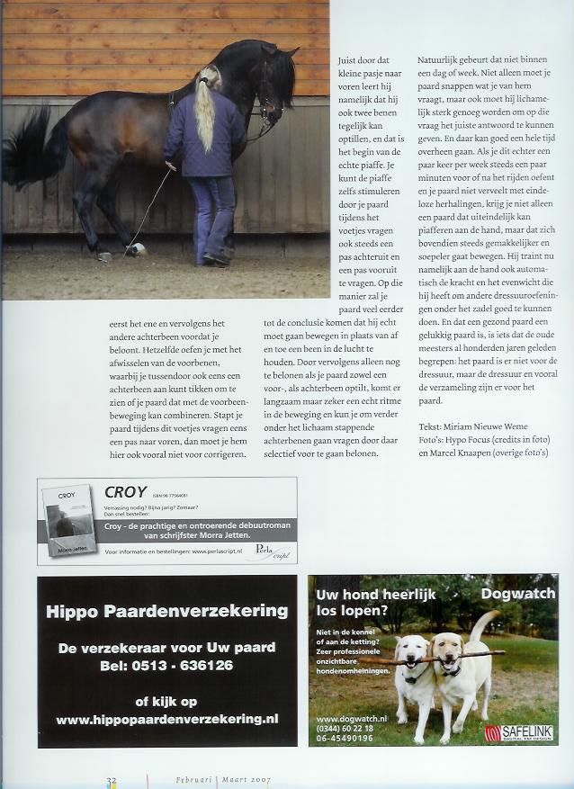 Piaffe moet je inderdaad niet aan beginnen als je het niet kan gebruiken