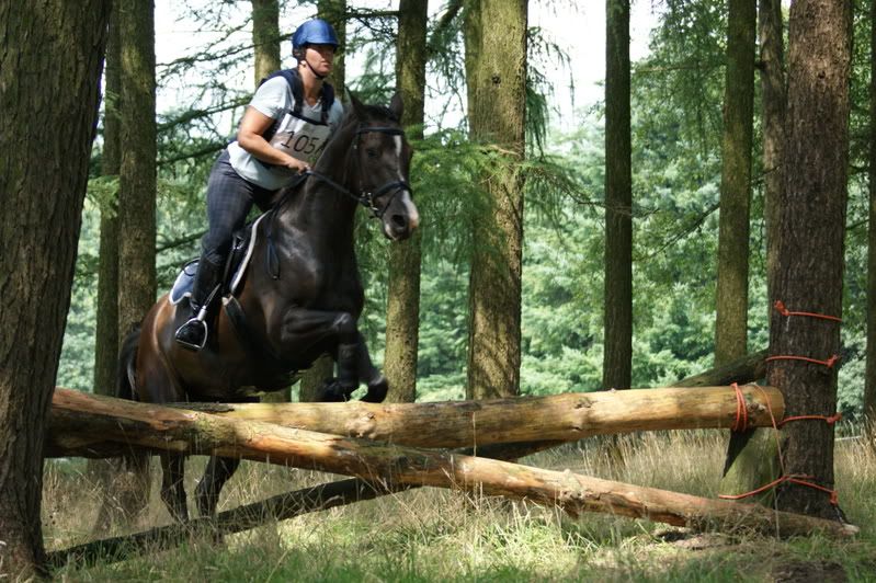 ankie1 schreef:een bruin paard,witte bles, grijse anky pad ,bruin hoofdstel met mexicaanse neusriem en bereden door een man met bruine cap..